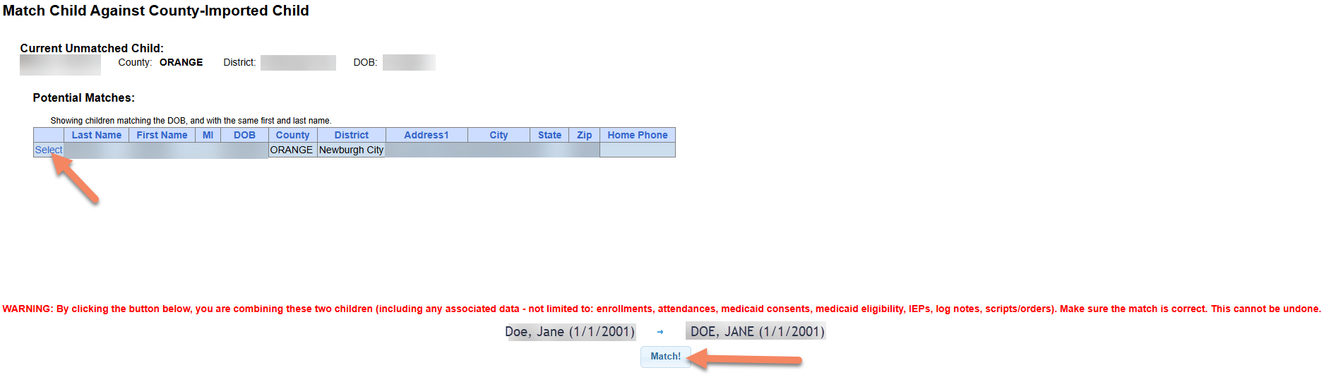 After the Unmatched Child and Unmatched Enrollment(s) have been created, in order to bill for them, you will need to match them to the county’s entries.
