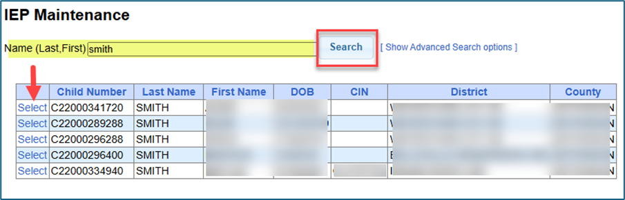 - Click "Select" on the left next to the appropriate child if multiple options populate