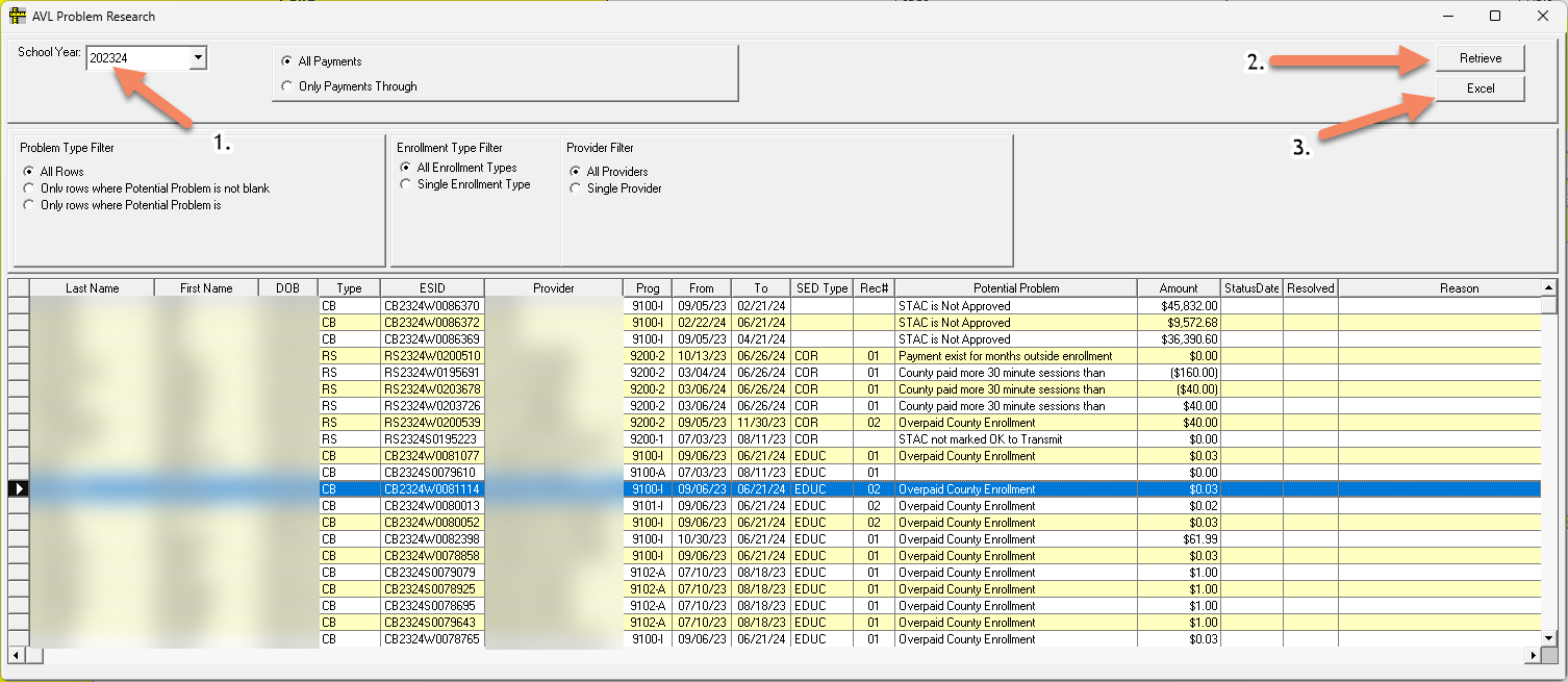 -This is the most important column in this list, as it shows what type of problem is associated with the enrollment. If this column is blank, then that means the enrollment has no problems and should be able to get claimed without further actions if it has positive claims. The only reason that there are enrollments with blank potential problems is that the unclaimed payment research will bring up all the enrollments with unclaimed payments.