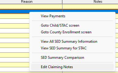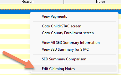 -These are optional note-taking fields where you can manually enter status, notes, and indicate whether it's resolved or not. To edit those fields, you need to right-click the enrollment line and select "Edit Claiming Notes".